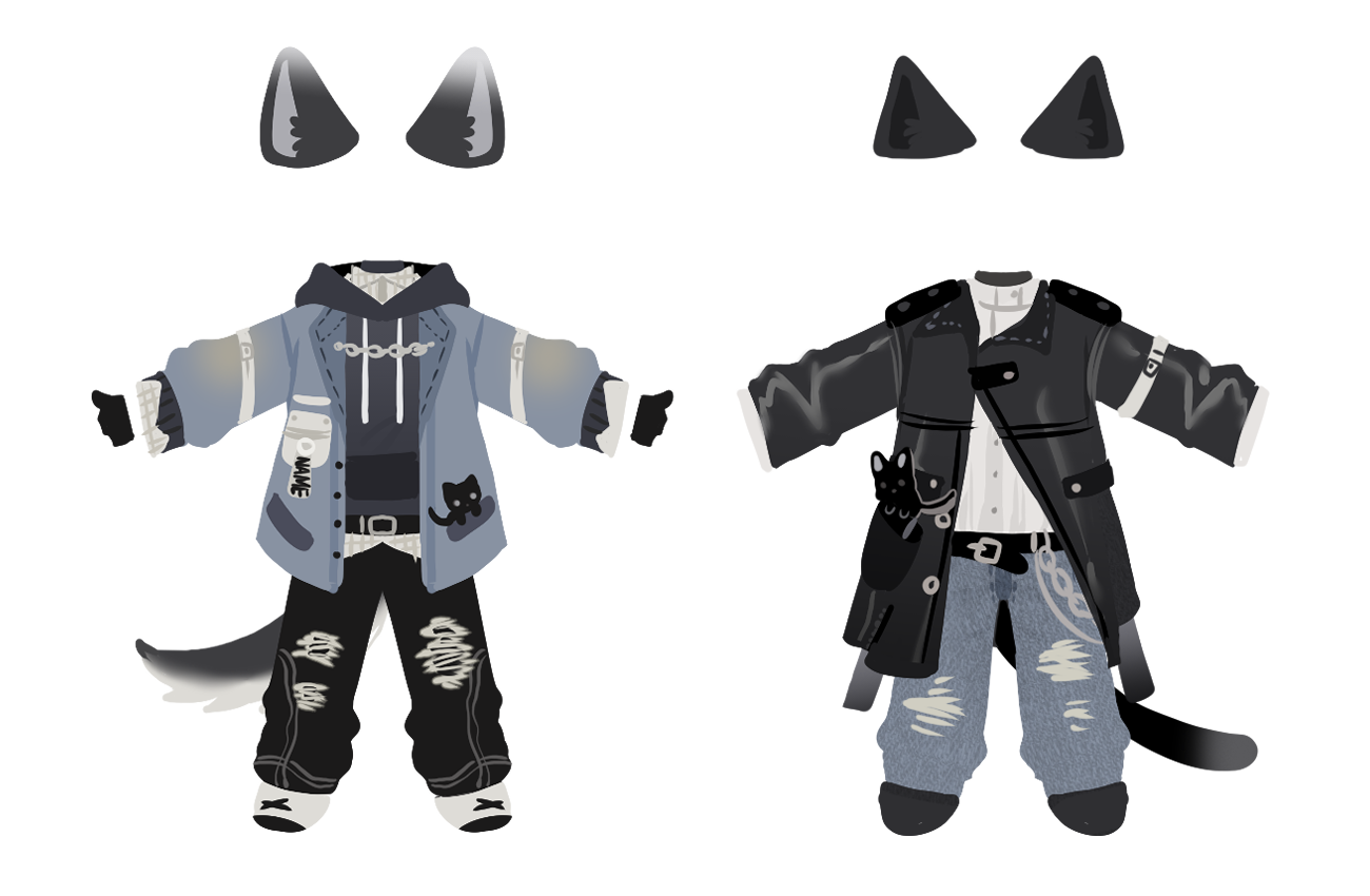 디테일 전부 뭉개지는 간단 페어룩 타입입니다 ㅜ.ㅜ!!! 자료용으로는 알맞지 않을 수도... 뭉개진 디테일은 이 의상을 원형으로 새로운 그림을 그리실 때 마음대로 변형/수정하셔도 괜찮습니다.